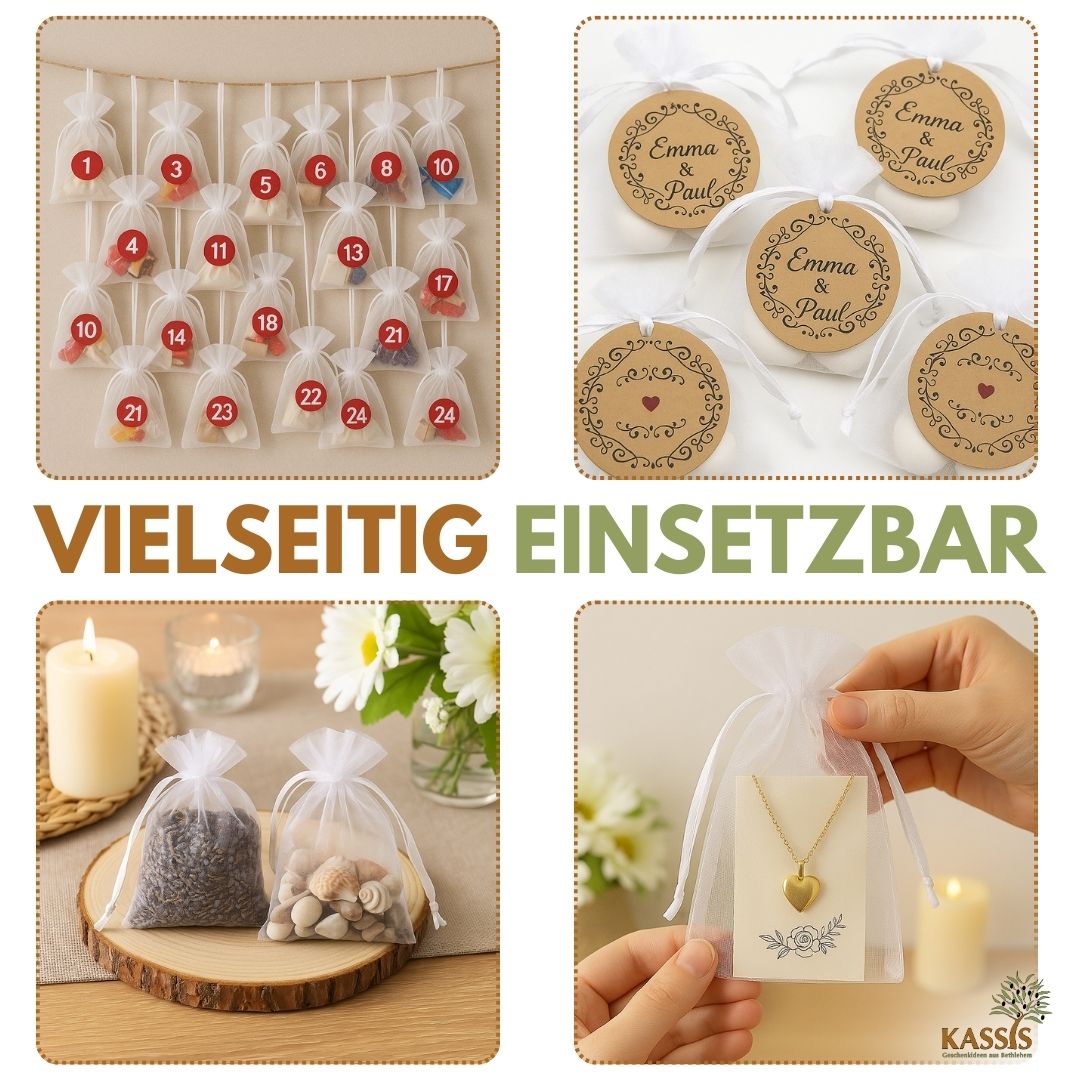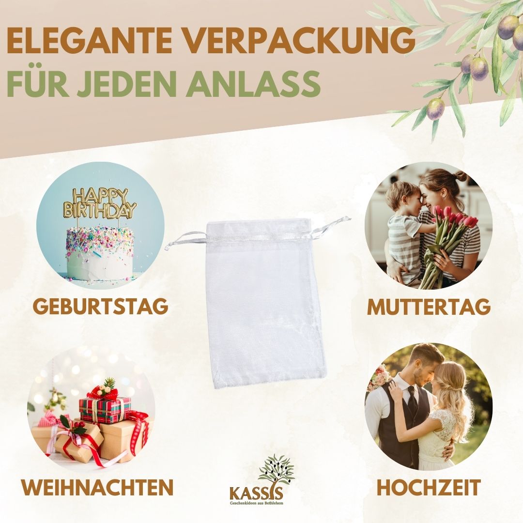 Whether for small wooden figurines, tactile objects, keychains, or jewelry – the organza bag is the perfect complement to your gift idea. It is also suitable for party favors, giveaways, or as decorative packaging for special celebrations.