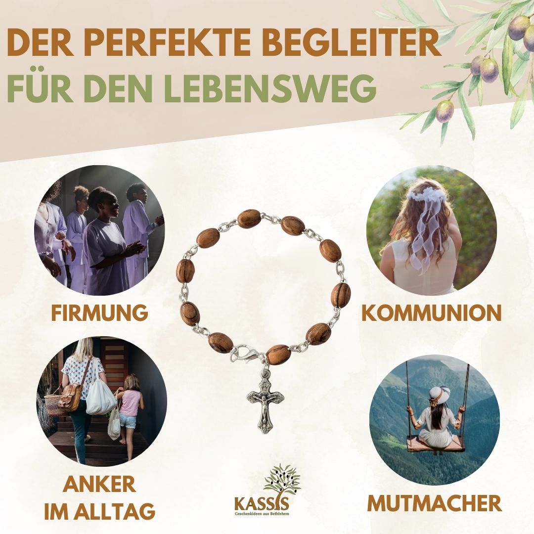 Ein stilvolles, natürliches Accessoire – ideal als Geschenk zu religiösen Anlässen wie Taufe, Kommunion, Firmung oder einfach als Symbol des Friedens und der Freundschaft.
