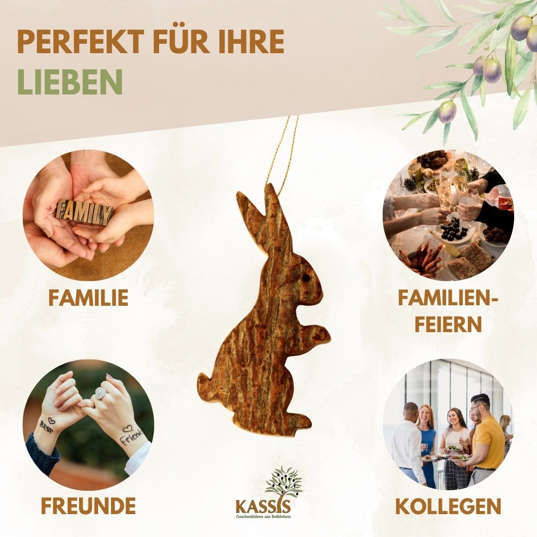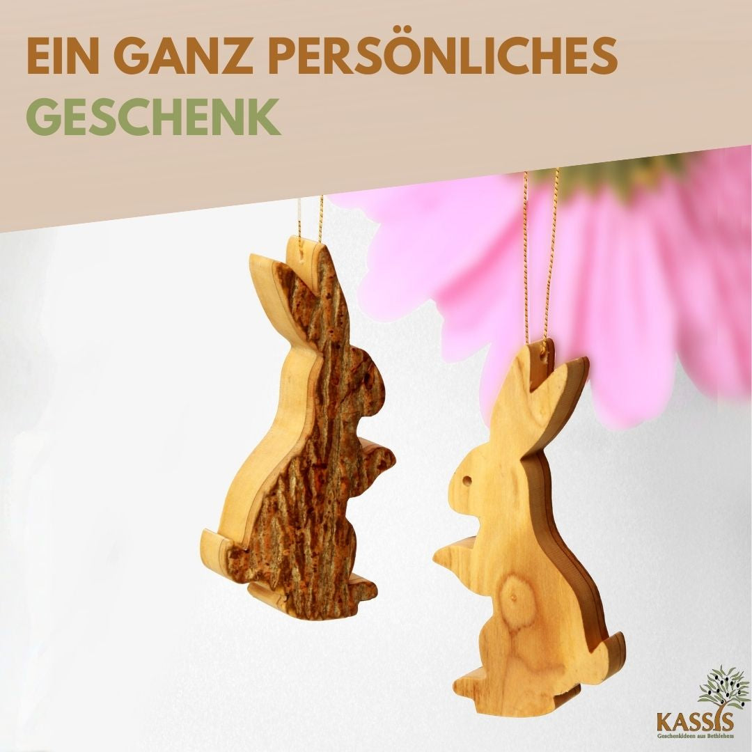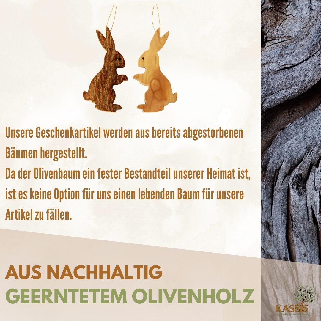 🌿 SUSTAINABLE OLIVE WOOD: Our unique bunnies are made from sustainably harvested olive wood, which means we actively contribute to environmental protection.