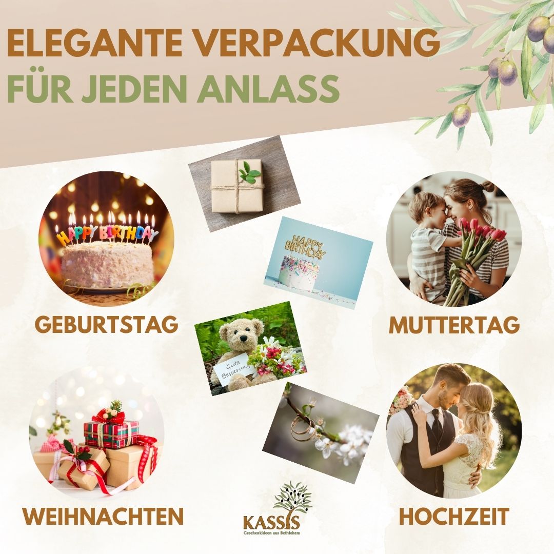 Especially when combined with our handcrafted olive wood products from Bethlehem, a harmonious overall picture is created that radiates warmth, quality and personal attention.