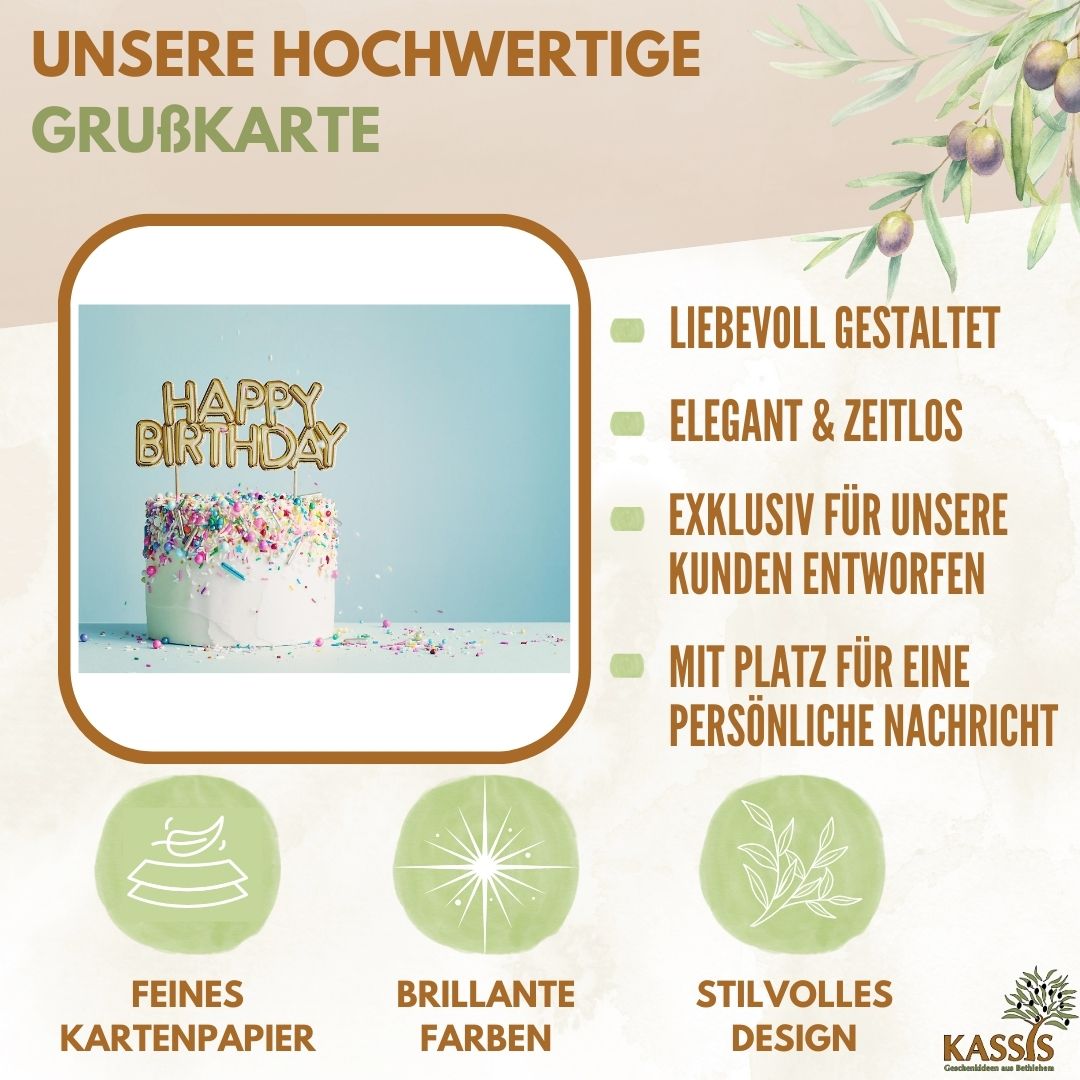 Add a personal touch to your gift with our stylish greeting card from Kassis. Each card lovingly complements your present and makes it a special keepsake.