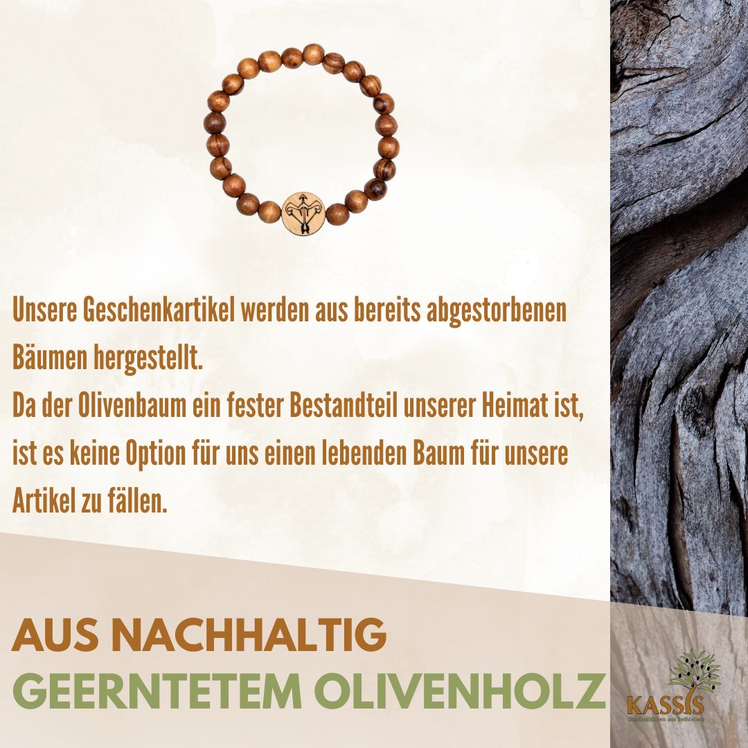 This olive wood bracelet was hand-carved and finely crafted in Bethlehem. It's a perfect gift idea for loved ones for various occasions. Whether it's a birthday, Mother's Day, Valentine's Day, or just because, this bracelet with its unique grain is sure to delight. Its simple design suits both traditional and modern tastes.