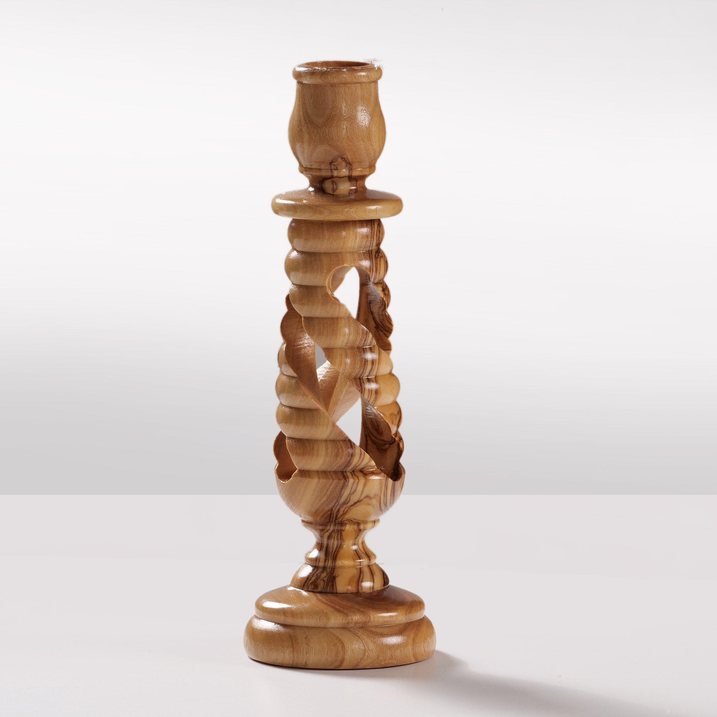 This artfully turned candlestick is crafted in Bethlehem by skilled artisans from high-quality olive wood. Its spiral design lends it an elegant lightness, while the warm grain of the olive wood adds a touch of naturalness and harmony.