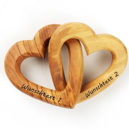 🌿 PERSONALIZED KEEPSAKE: The connected decorative hearts made of olive wood are a unique gift that will remain a lasting memento of a special day in the life of the couple or your loved one.