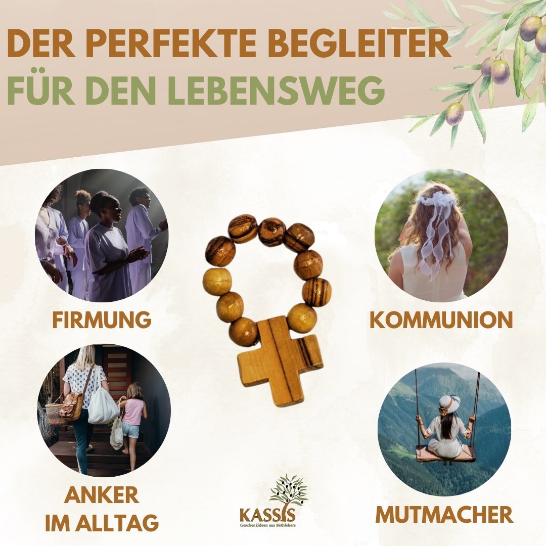 🌿 FÜR JEDEN ANLASS UND JEDEN GLAUBENSWEG: Ob als Geschenk zur Erstkommunion, Firmung, Taufe, zu christlichen Festen oder einfach als treuer Begleiter im Alltag — der Fingerrosenkranz eignet sich für Menschen jeden Alters und jeder Lebensphase, die Spiritualität und Tradition schätzen.