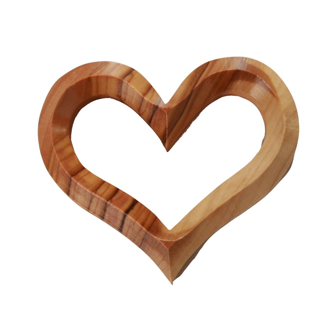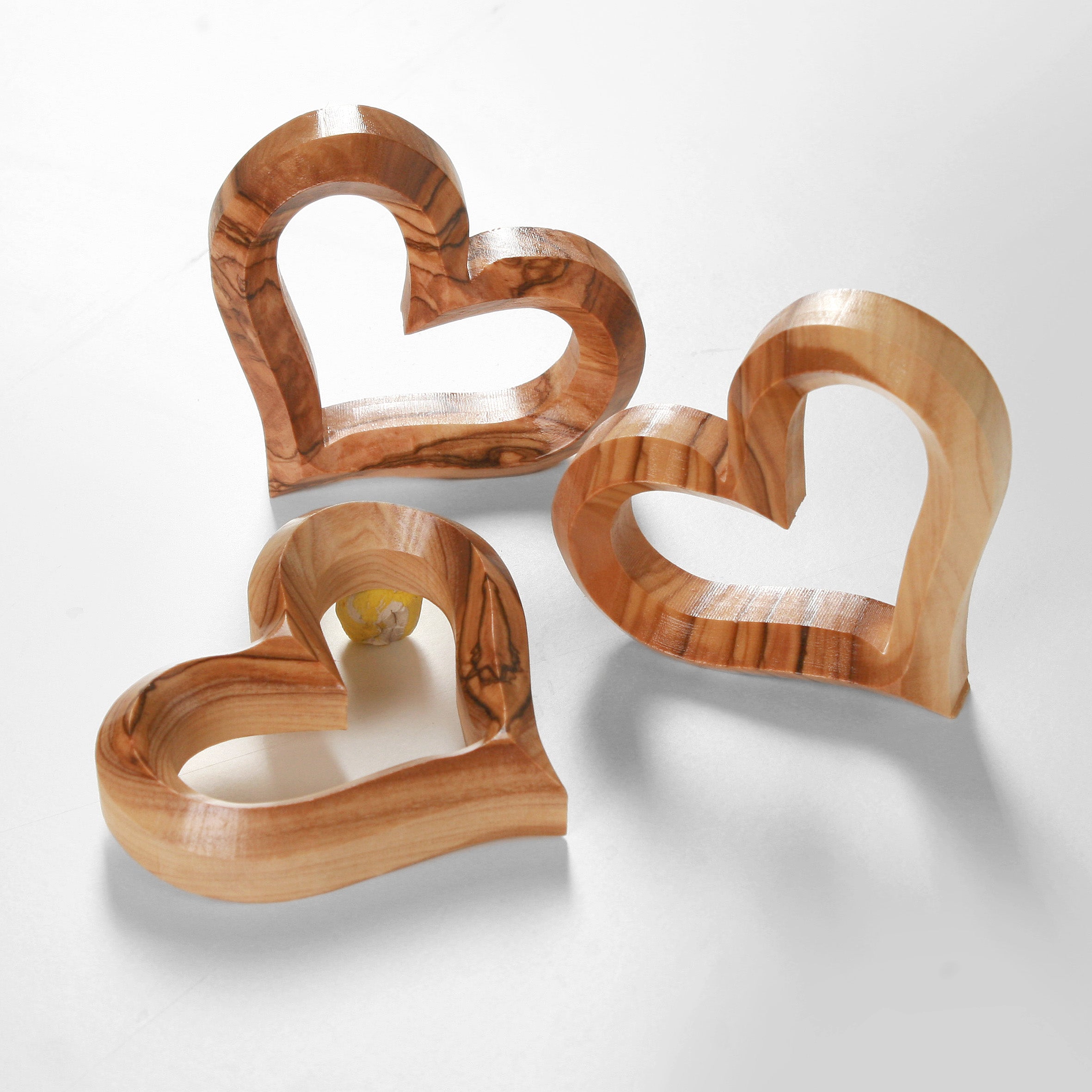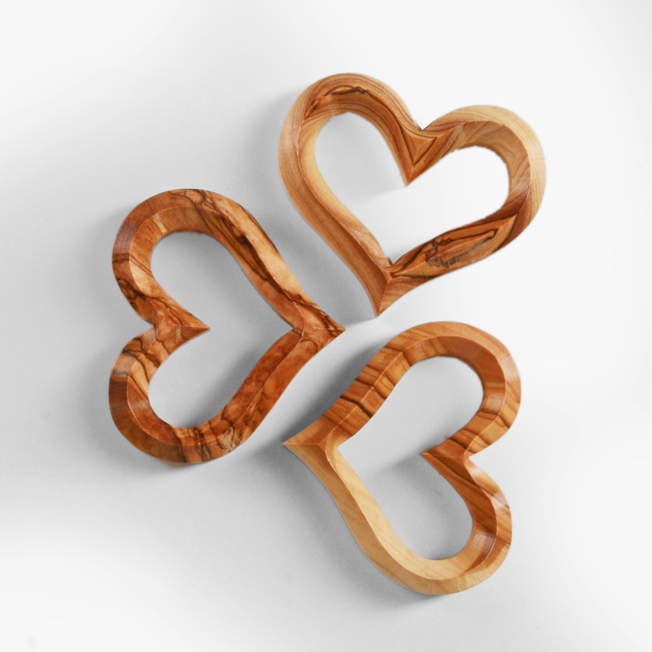 Jedes Herz wird in Bethlehem von erfahrenen Kunsthandwerkern aus hochwertigem Olivenholz gefertigt. Die einzigartige Maserung des Holzes verleiht jedem Stück seinen individuellen Charakter – kein Herz gleicht dem anderen.