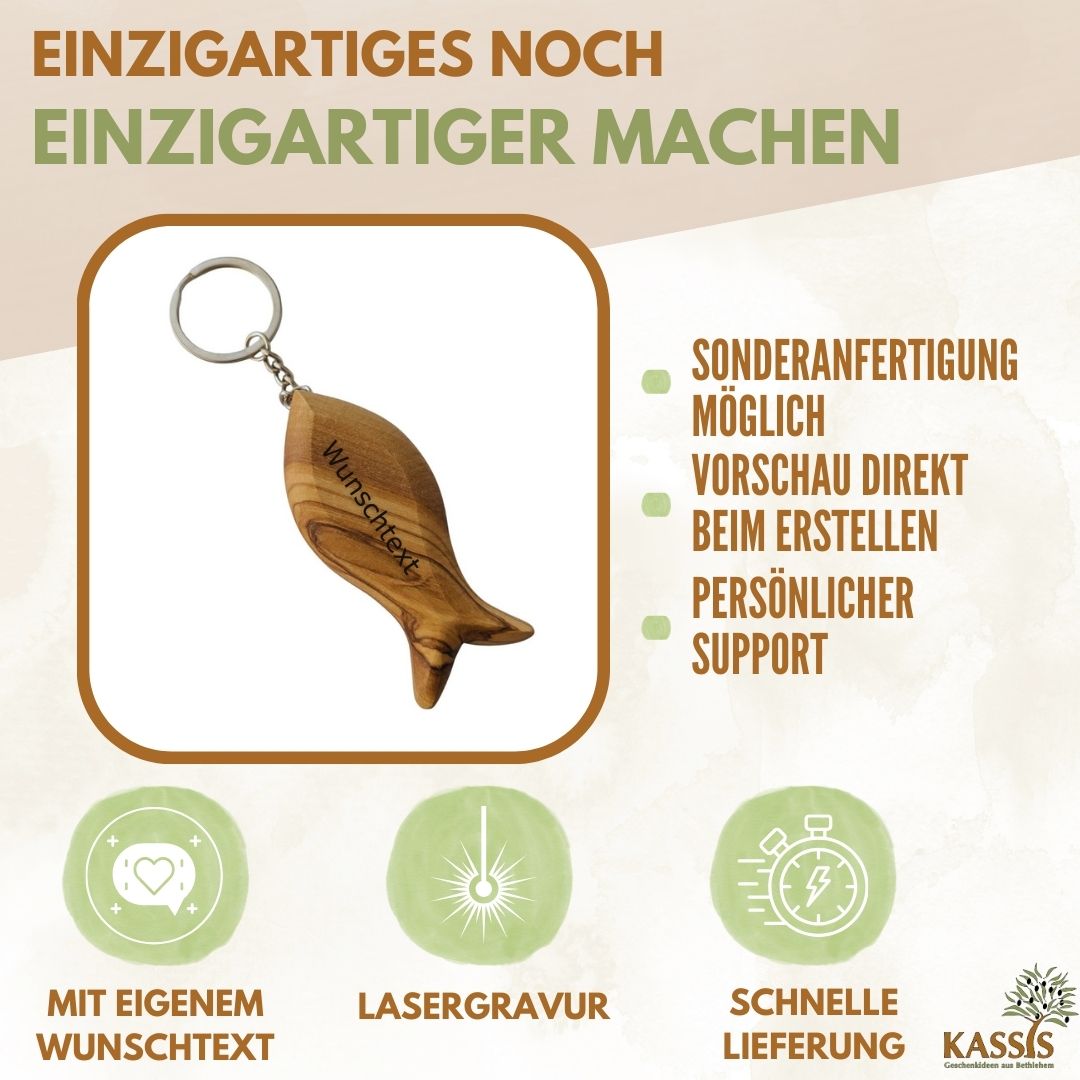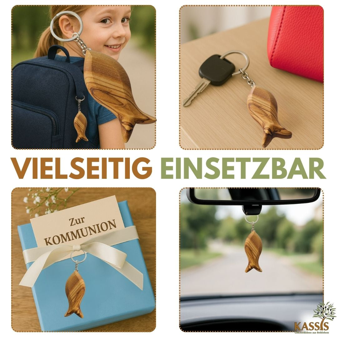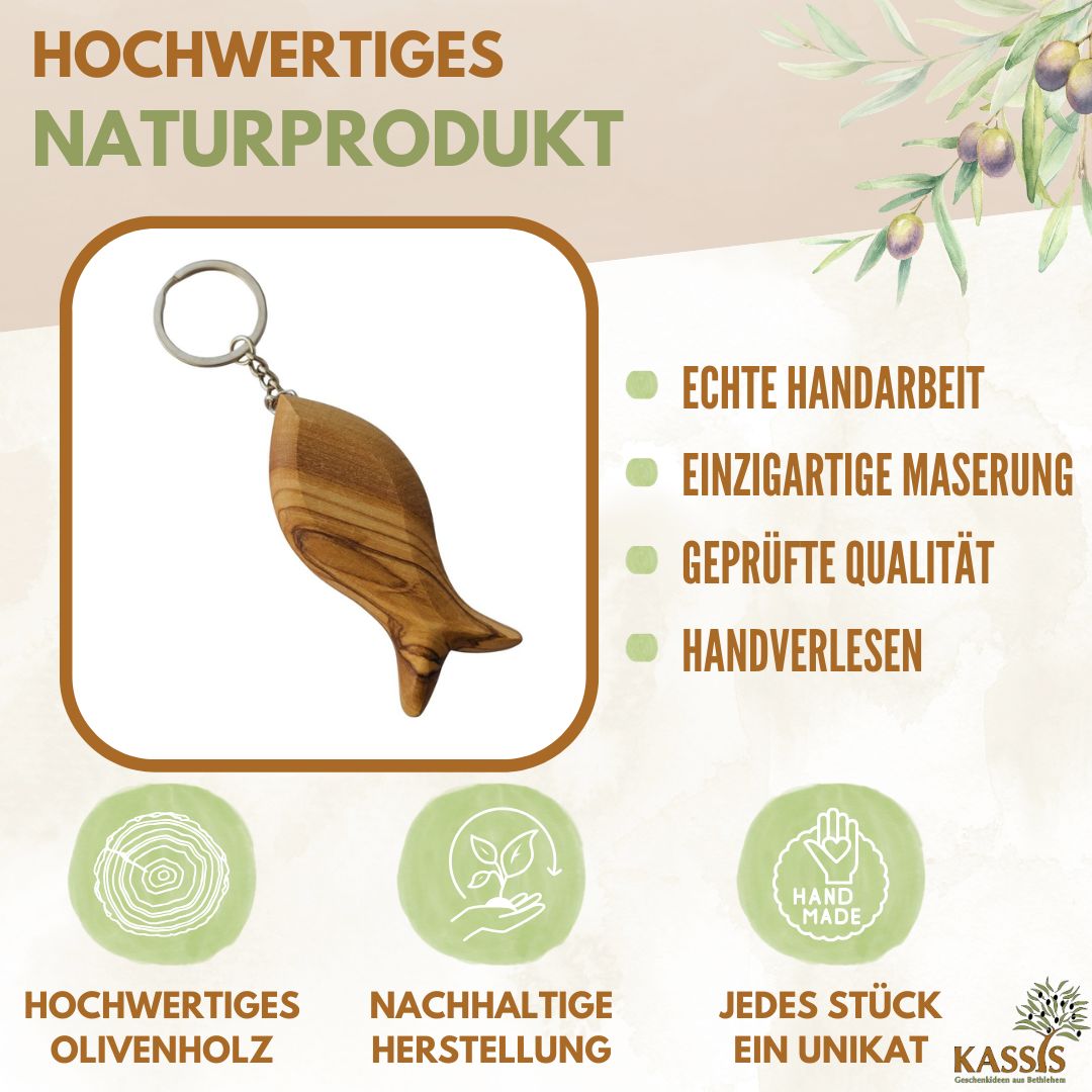 • 1× Fisch-Schlüsselanhänger aus Olivenholz