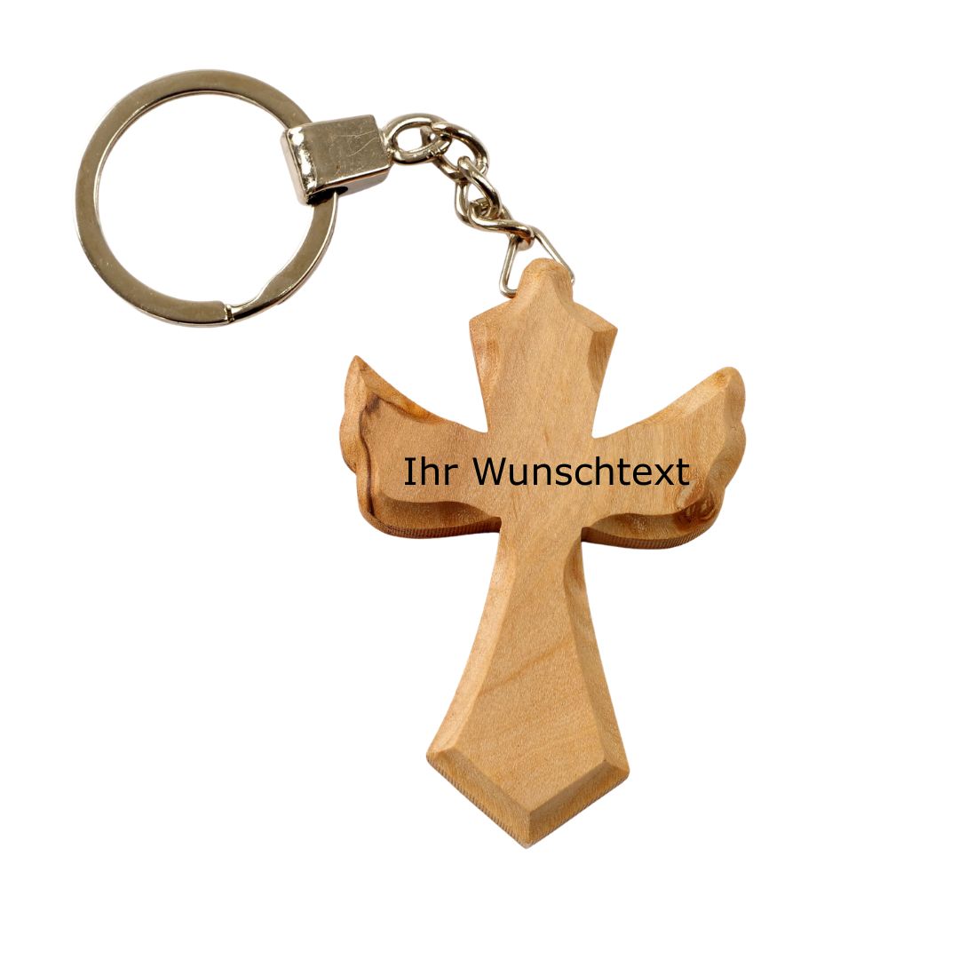 Personalisierter Schlüsselanhänger Kreuz in Engel-Form