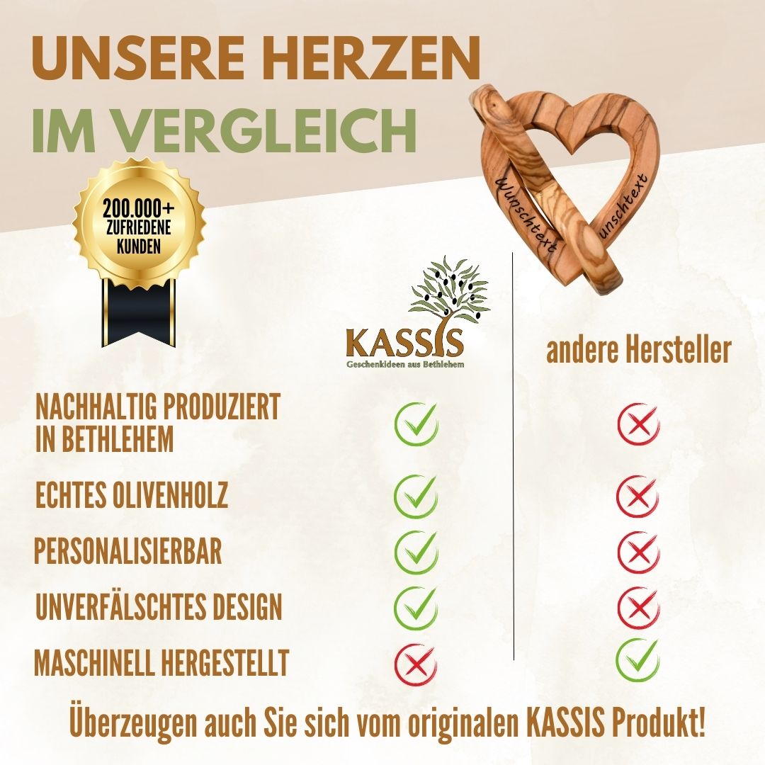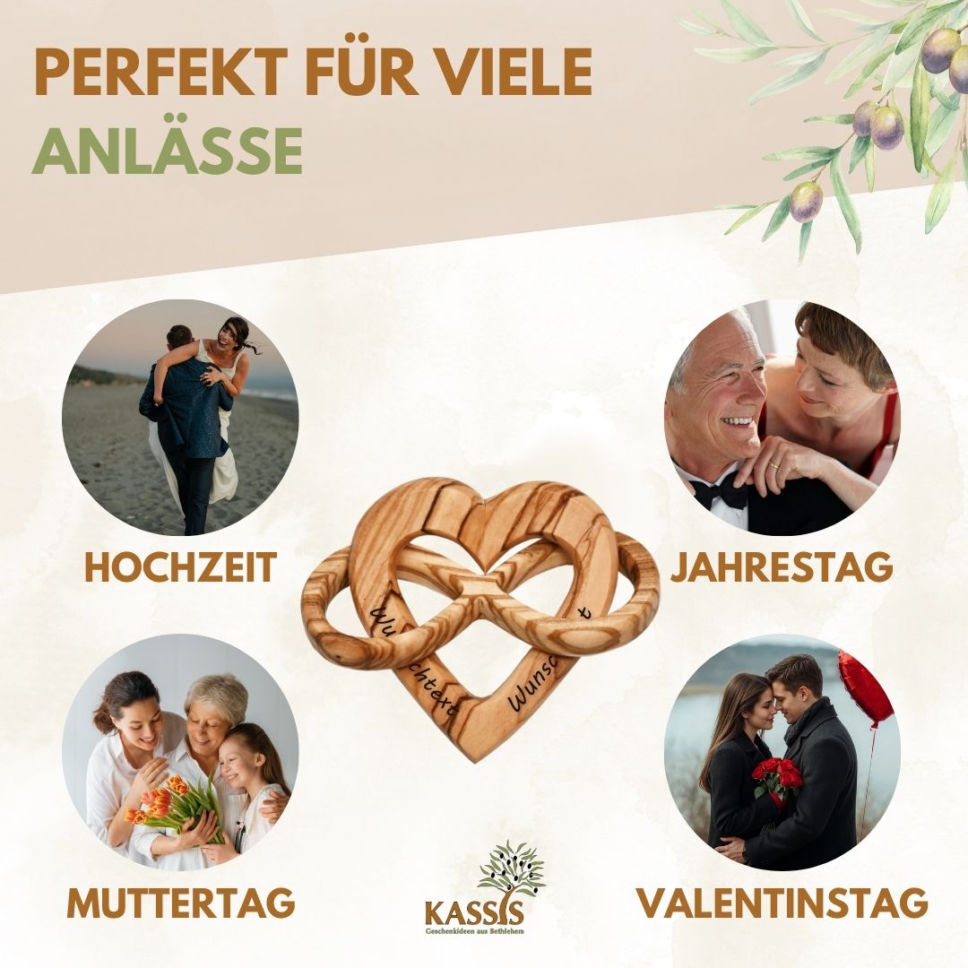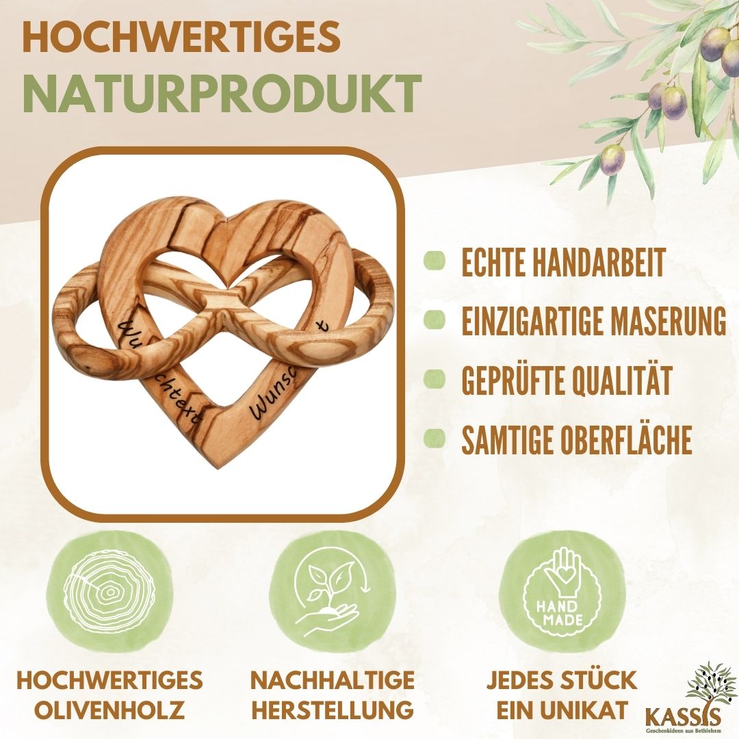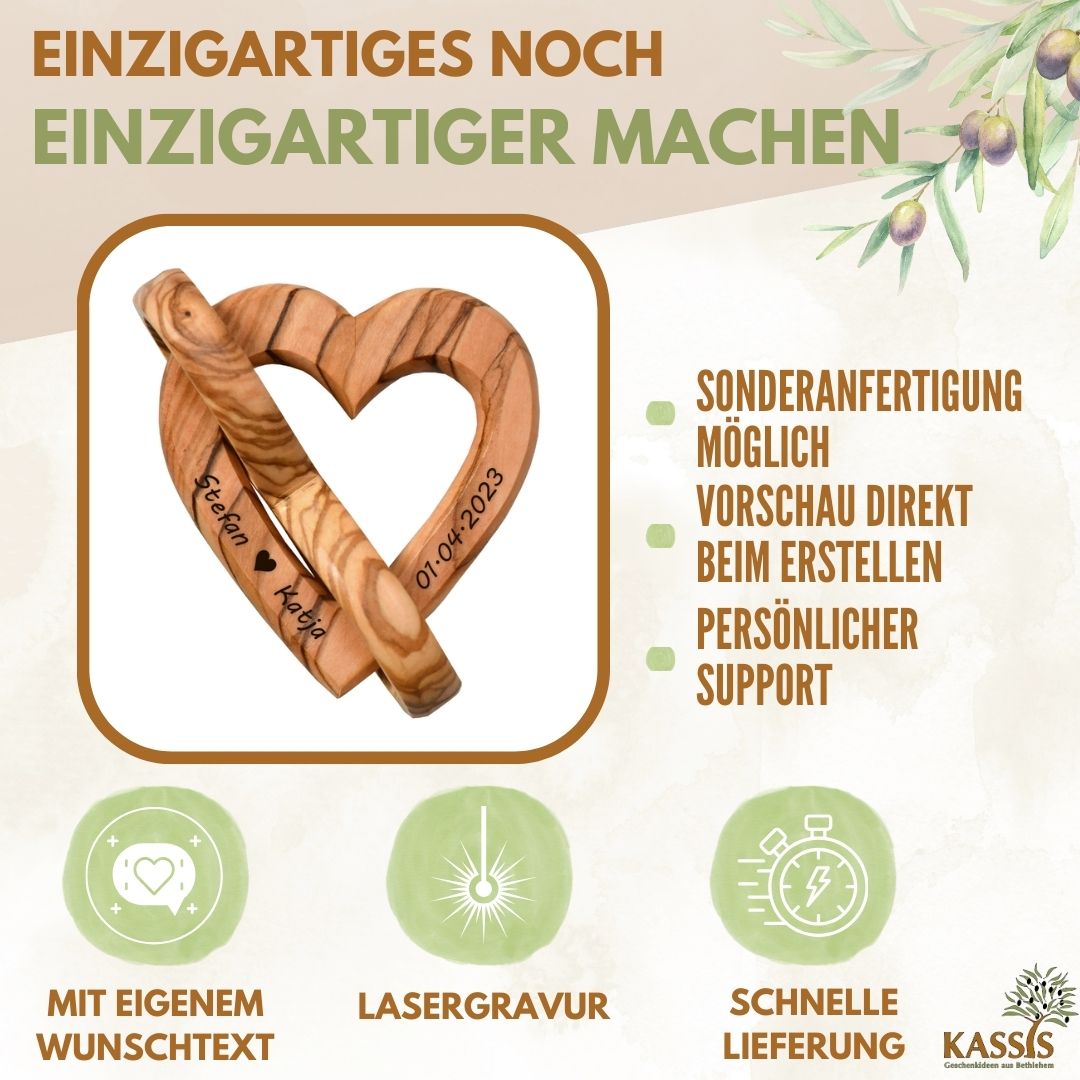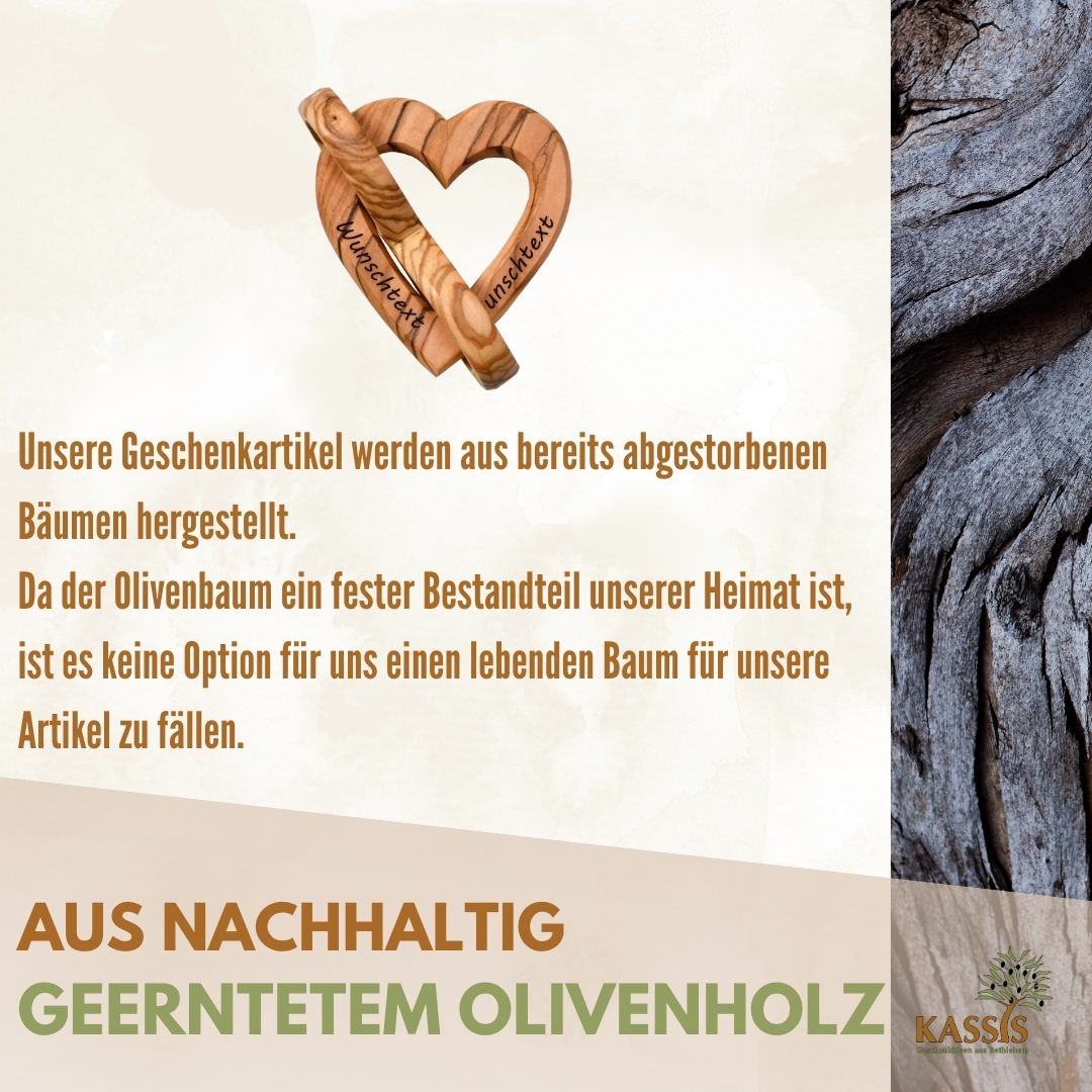 Olive wood is a durable, environmentally friendly natural material. This makes this gift not only emotionally valuable, but also a conscious choice.