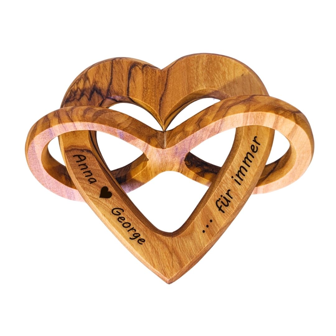 • 1× Heart-shaped infinity decorative object made of olive wood