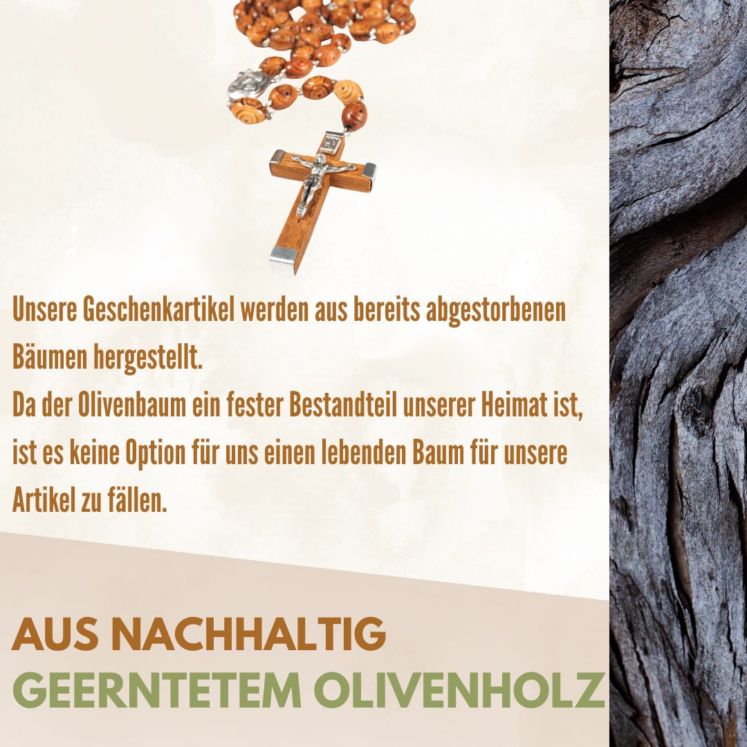 🌿 SUSTAINABLE OLIVE WOOD: Our rosaries are handcrafted from sustainably harvested olive wood from Bethlehem, which contributes to environmental conservation. They bear the timeless beauty of this wood and are a statement of sustainability.