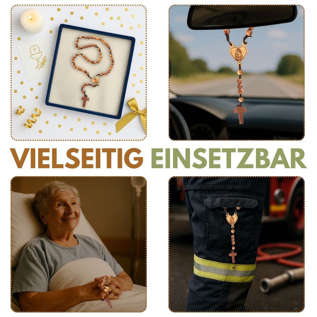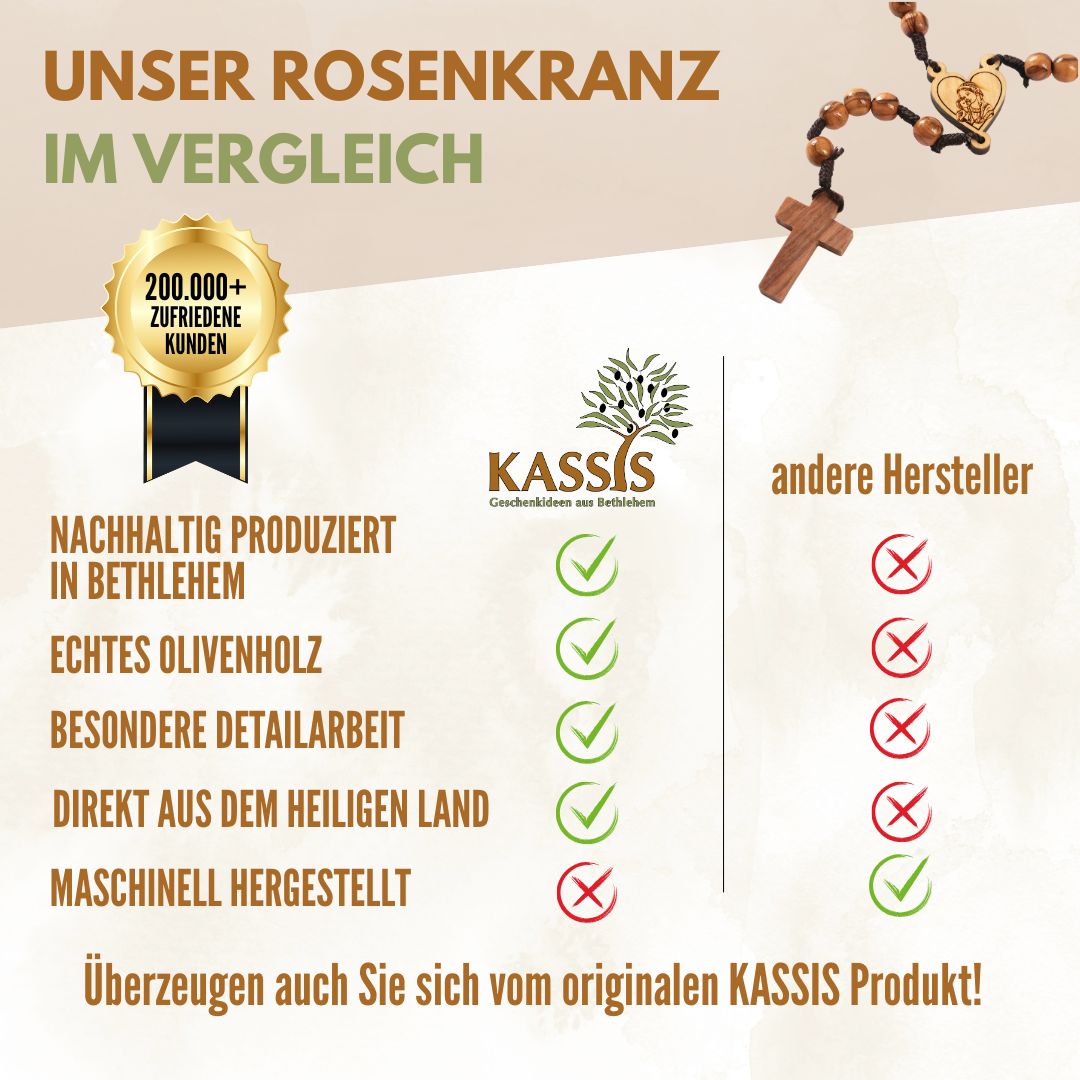 🌿NACHHALTIGES OLIVENHOLZ: Unsere Rosenkränze werden aus nachhaltig geerntetem Olivenholz aus Bethlehem handgefertigt, was zur Erhaltung der Umwelt beiträgt. Sie tragen die zeitlose Schönheit dieses Holzes und sind ein Statement für Nachhaltigkeit.
