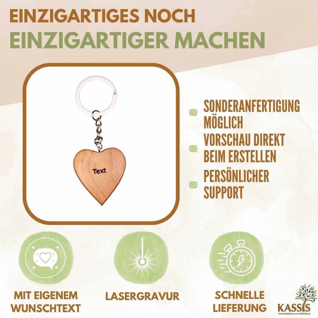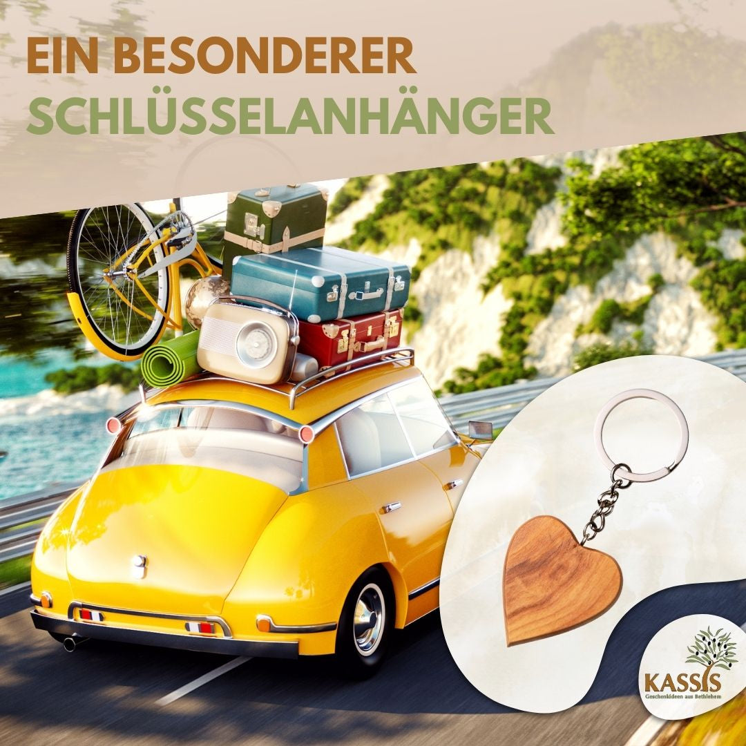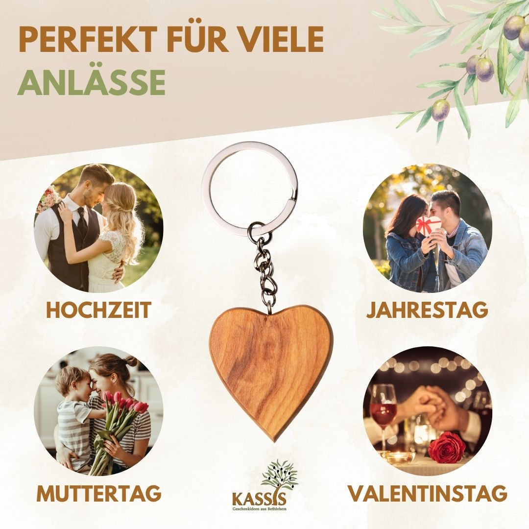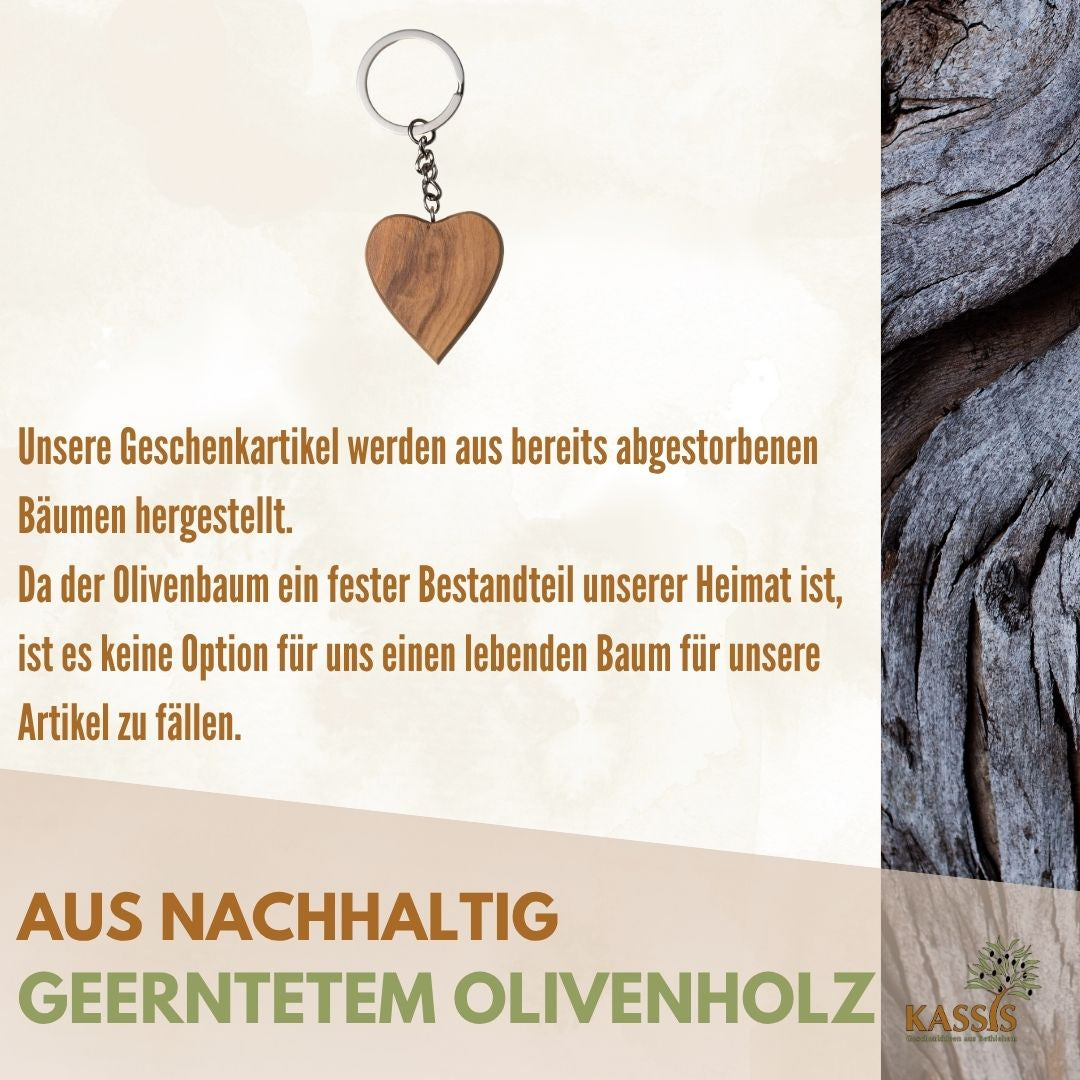Schlüsselanhänger Herz aus Olivenholz – Handgefertigt in Bethlehem
