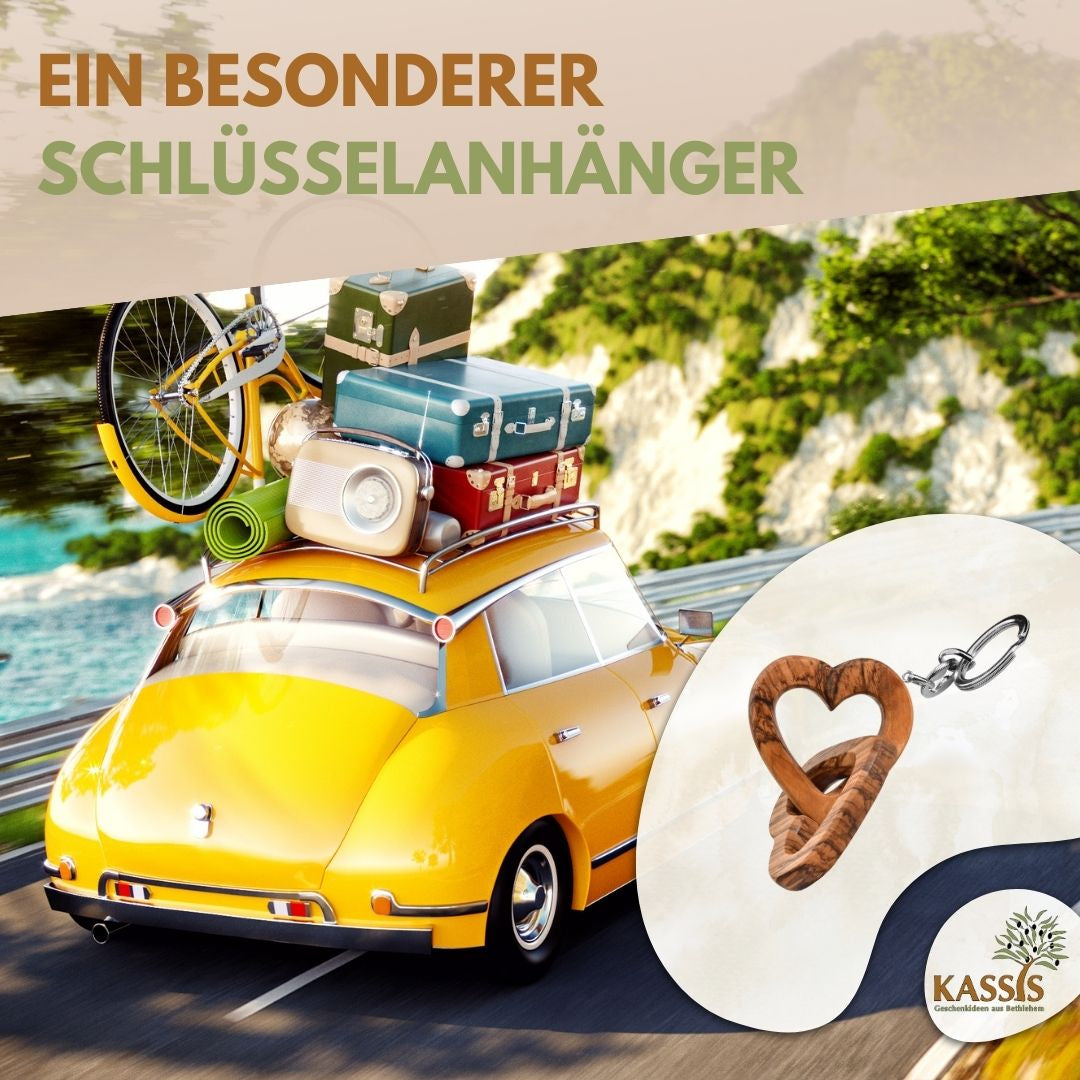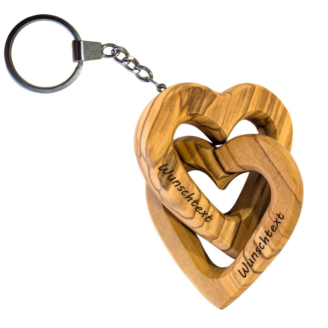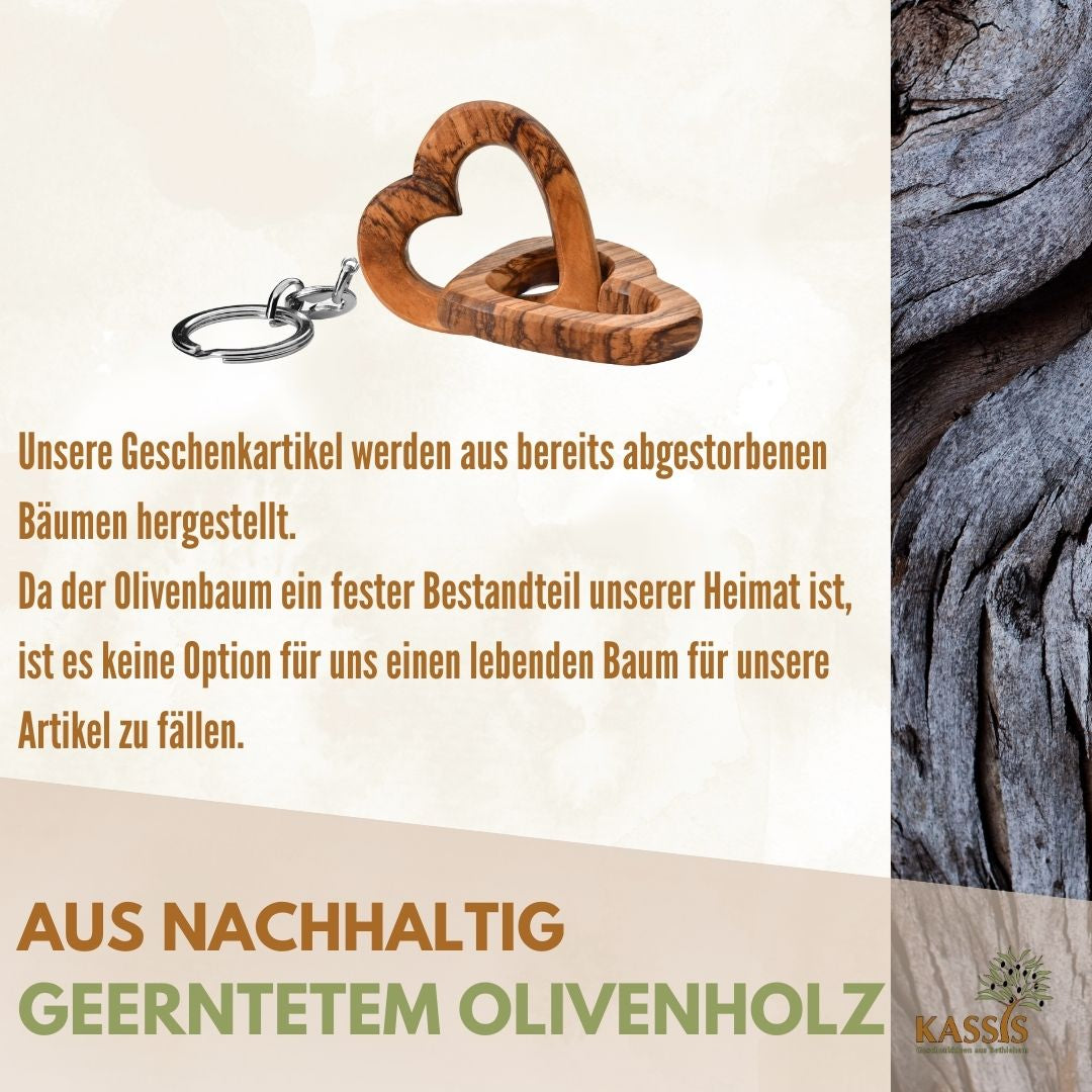 • 1× Schlüsselanhänger „Verbundene Herzen“ aus Olivenholz