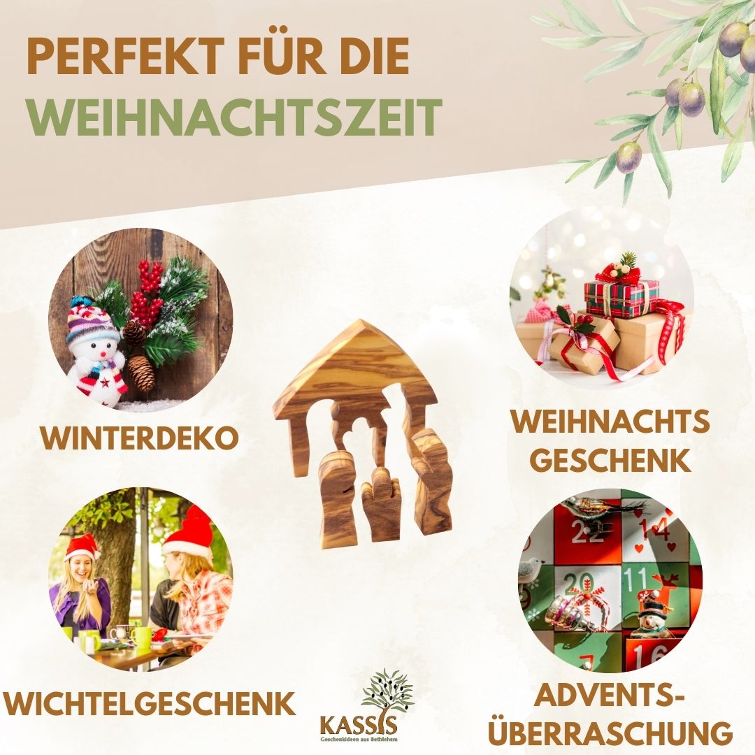 🌿 NACHHALTIG & EINZIGARTIG: Unsere Olivenholz-Krippen aus Bethlehem werden aus nachhaltig geerntetem Holz hergestellt, was zur Umweltfreundlichkeit beiträgt. Sie sind einzigartige Weihnachtsschätze, die Nachhaltigkeit und Qualität vereinen. Genießen Sie eine besondere Weihnachtszeit mit unseren handgefertigten Puzzle-Krippen aus Bethlehem.